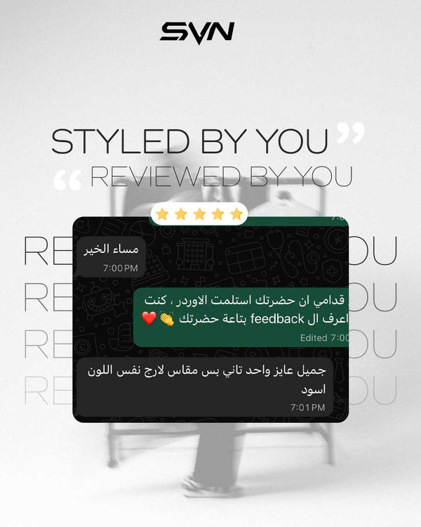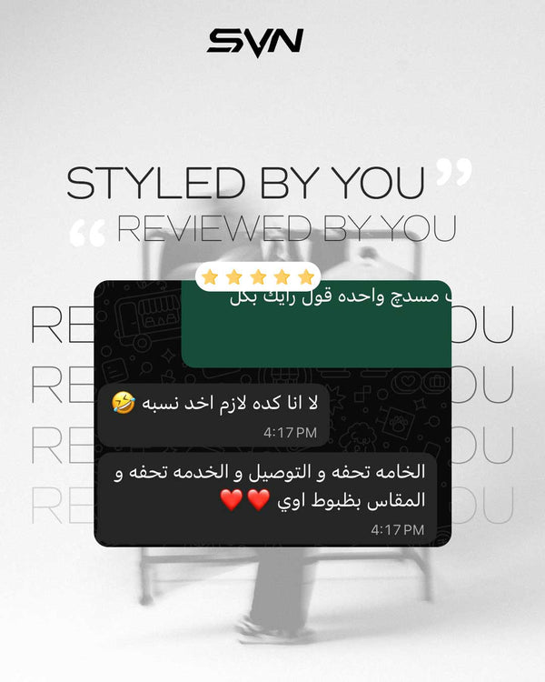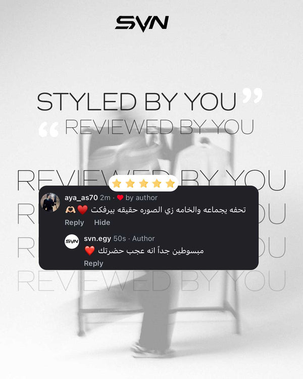 SVN is an Egyptian unisex brand created for the new generation. We focus on premium fabrics, clean design, and everyday comfort. Each piece is made to stand out through quality, simplicity, and attention to detail.